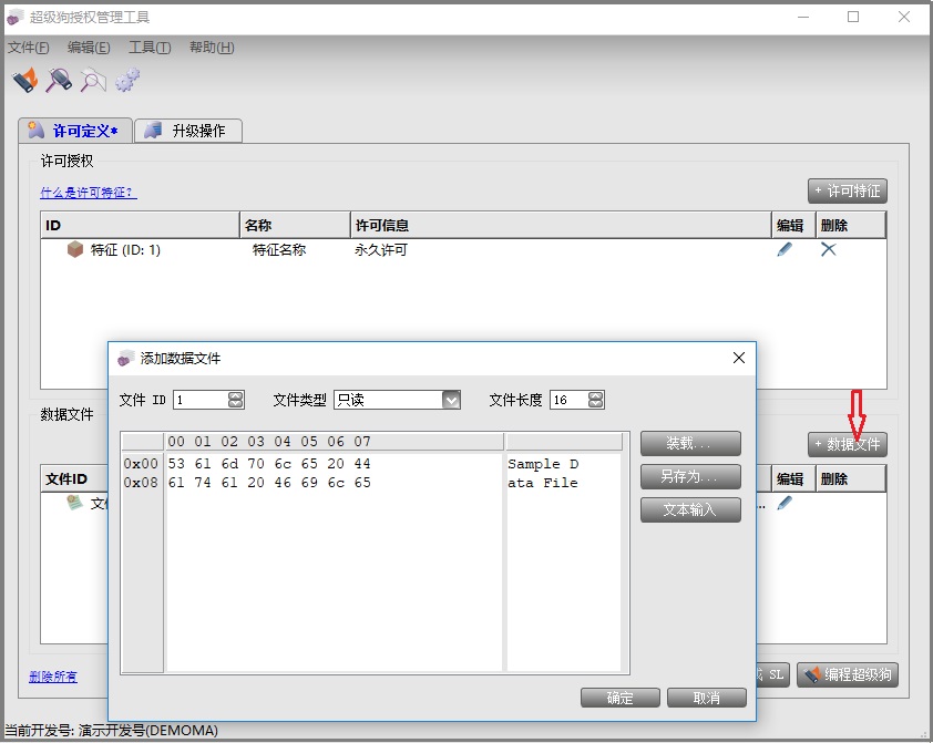 點擊“數(shù)據(jù)文件”添加,數(shù)據(jù)文件支持只讀、讀寫和寫一次三種方式,文件長度最多不能超過1024字節(jié)。添加完以后按確定保存。