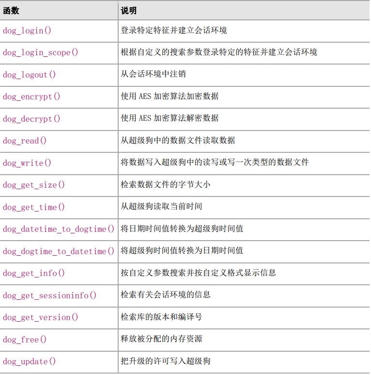 這些函數(shù)詳細(xì)使用說明,請通過打“超級狗工具包“,在操作手冊和教程的SuperDog Developer'sGuide.pdf文件來查閱。