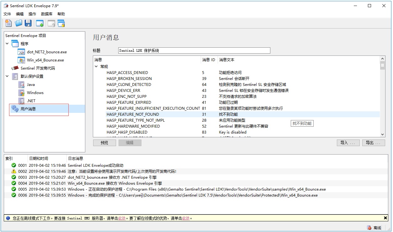程序加密后運(yùn)行時(shí),會(huì)根據(jù)加密鎖的狀態(tài)出現(xiàn)彈窗(如沒(méi)有插加密鎖等),如果希望修改顯示的彈窗內(nèi)容,可根據(jù)顯示的消息ID數(shù)值,找到對(duì)應(yīng)的消息文件,修改后重新加密。