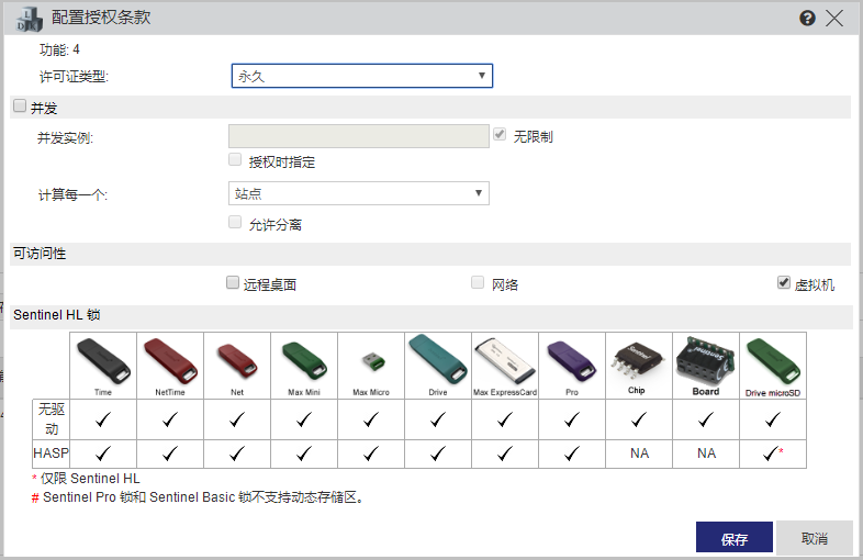 配置里面涉及到的有些功能,如到期時間,網(wǎng)絡并發(fā)數(shù)等需要特定的加密鎖才能支持。比如到期時間只有time鎖和max鎖支持,網(wǎng)絡并發(fā)只有net鎖支持。