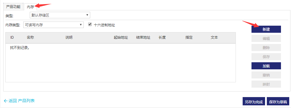 在新建產(chǎn)品界面上的“內(nèi)存”分頁,可以設置預置到加密鎖中的數(shù)據(jù),存儲容量視不同的加密鎖硬件而定,如pro鎖是112字節(jié),max是4kb字節(jié)等。